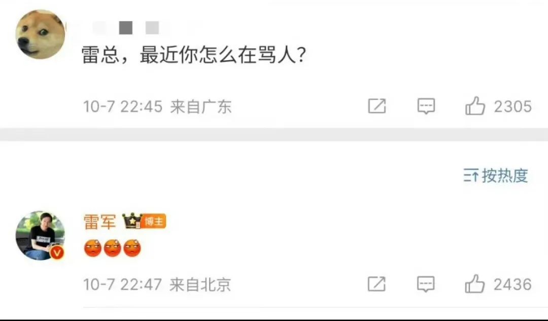对此事件,雷军本人在社交媒体平台则是回复了三个愤怒表情,表达自己的态度。