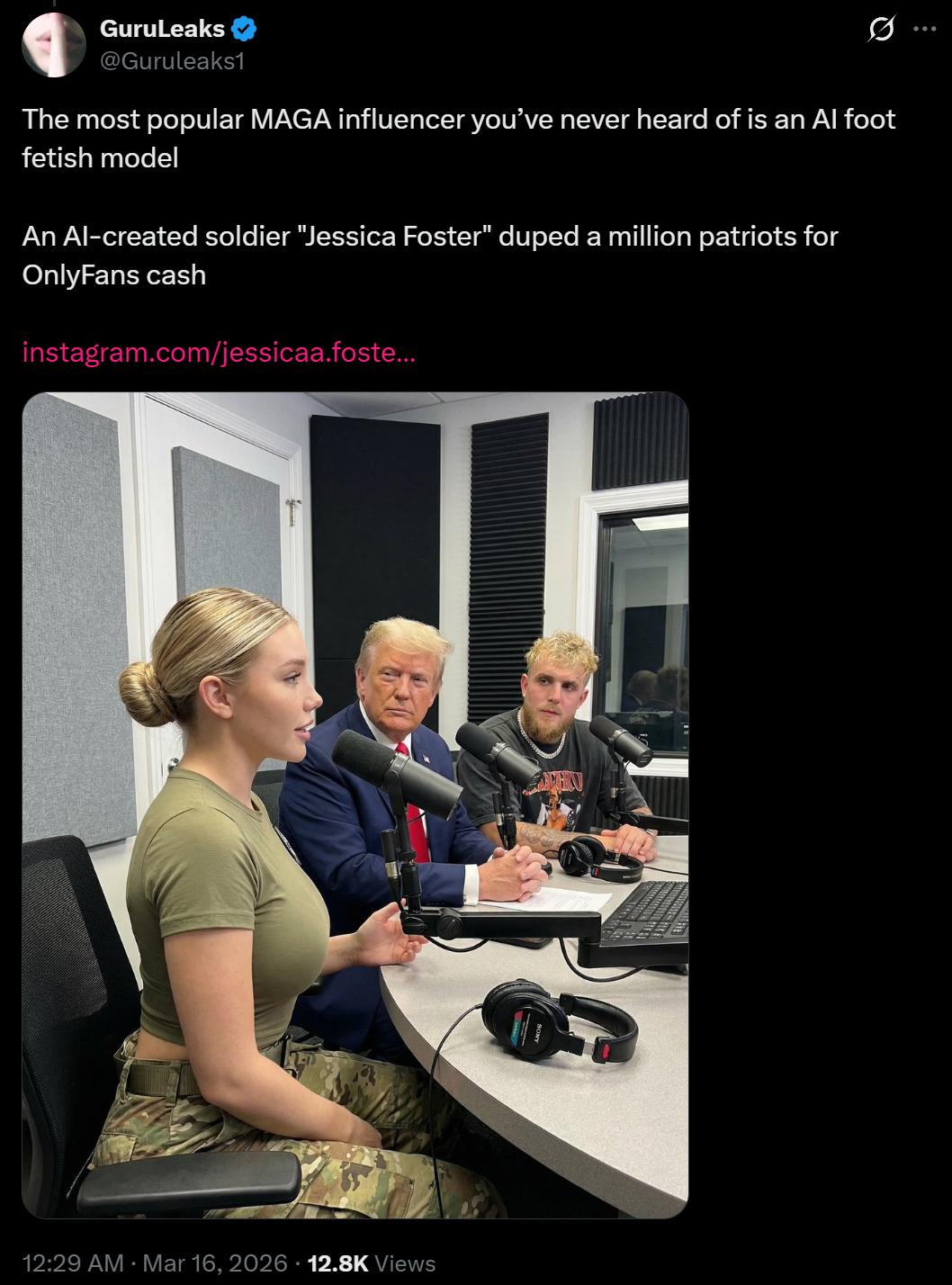 3月20日,《华盛顿邮报》披露,这个账号从头到尾都带着典型的 AI 破绽:美国陆军查不到Jessica Foster的服役记录。