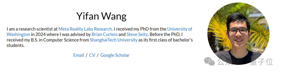 Yifan Wang,本科就读于上海科技大学计算机专业,今年刚获得华盛顿大学 CS 博士学位。