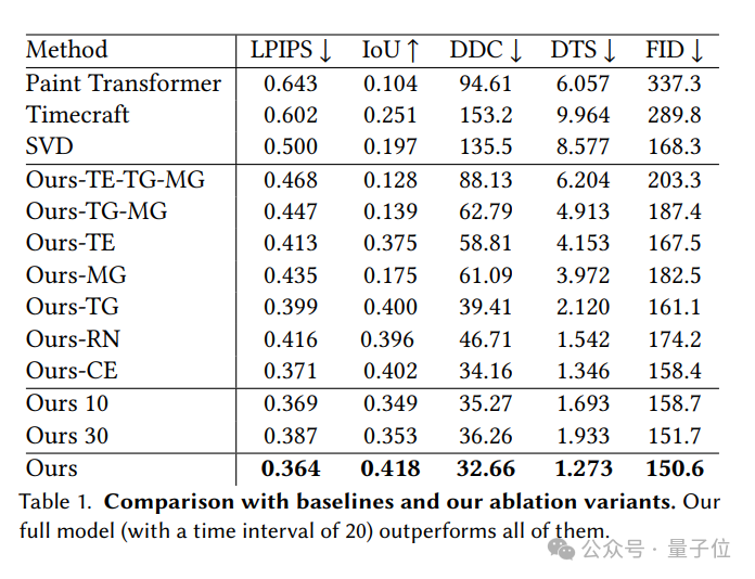 最终,与三个基线方法(Timecraft、Paint Transformer、Stable Video Diffusion)相比,其生成结果明显更优。