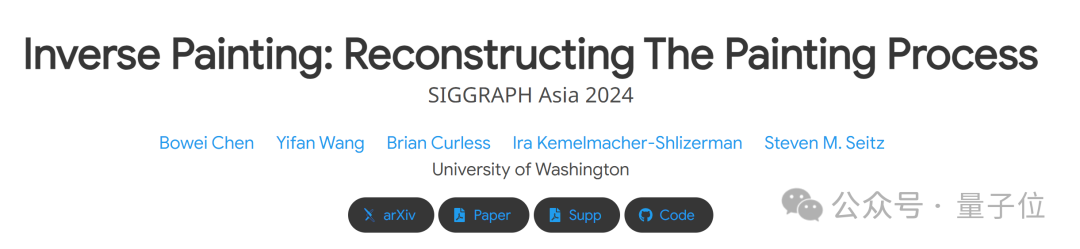 这项魔法来自华盛顿大学,项目名为 Inverse Painting,相关论文已入选 SIGGRAPH Asia 2024,其中两位作者还是东北大学(Bowei Chen )和上海科技大学(Yifan Wang)的校友。