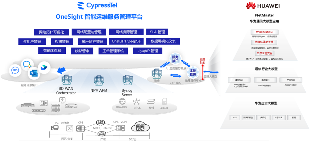 双方联合打造的下一代智能化运维解决方案【OneSight AI运维】,通过AI Agent实现售前智能化:设备资料检索、参数查询、选型推荐,让方案设计更高效;售中自动化:基于意图识别的动态配置生成,敏感操作人工确认,低风险操作自动执行;售后无人化:网络状态实时感知,故障精准定位、智能分析、自动闭环。