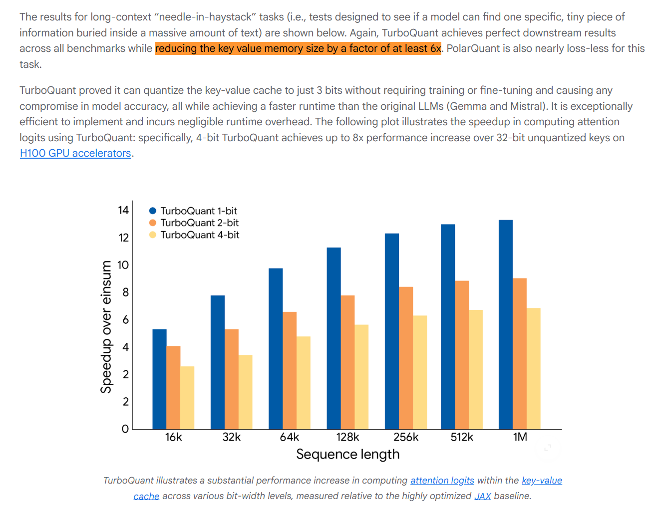 此外,在英伟达H100加速器上的测试结果显示,与未量化的键向量相比,该算法最高可实现约8倍性能提升。研究人员也表示,这项技术的应用不局限于AI模型,还包括支撑大规模搜索引擎的向量检索能力。