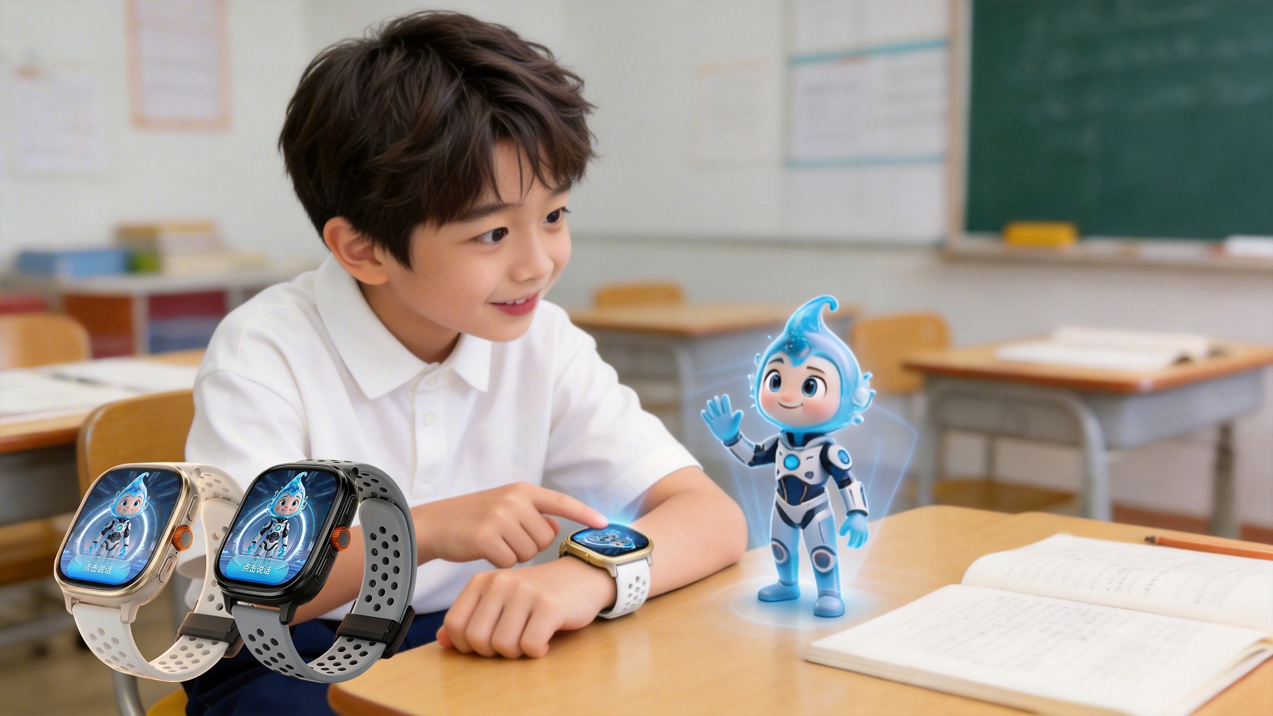 “一开始就是语音交互式的,小朋友可以跟手表对话;后来我们做了AI绘本,因为像'霸王龙长什么样'这种问题,语音很难解答,AI绘本可以直接在腕表上生成图片给孩子看;再后来是视频形态,能让恐龙动起来,发出声音;现在的4.0版本已经是AI儿童超级助手了,小朋友拥有一个长期记忆与成长,解决学习和生活难题的AI伙伴。”