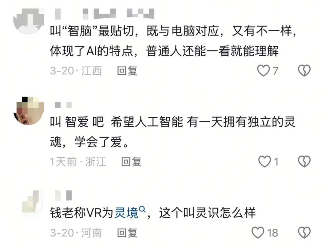 有人走国风路线,提议叫“灵境”。这是钱学森先生当年给虚拟现实取的名,放在 AI 身上再合适不过了。