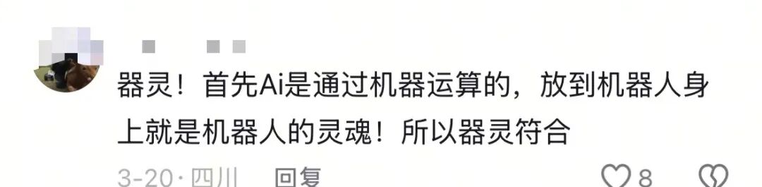有人喊出傻妞,梦回《魔幻手机》;有人玩谐音梗,叫仝智,“人+工”合体,直指人工智能本质,谐音“同志”。