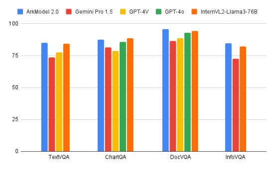无界方舟大模型在多项多模态评测中,均超越GPT-4o等业界知名模型: