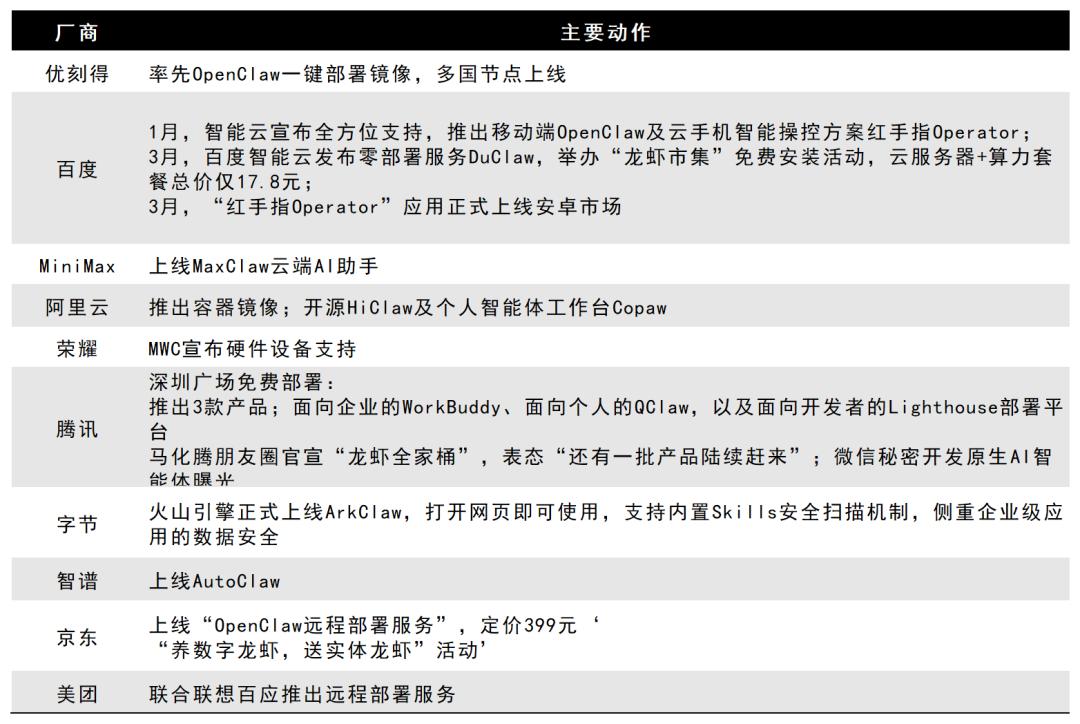 对于大模型厂商来说,2026年是至关重要的商业化验证年,需要向资本市场证明模型具备规模化落地、可持续变现的实际价值。龙虾热恰好成为厂商验证商业化能力、抢夺生态话语权的突破口,也推动各大巨头加速推出智能体产品,迅速切入该赛道。