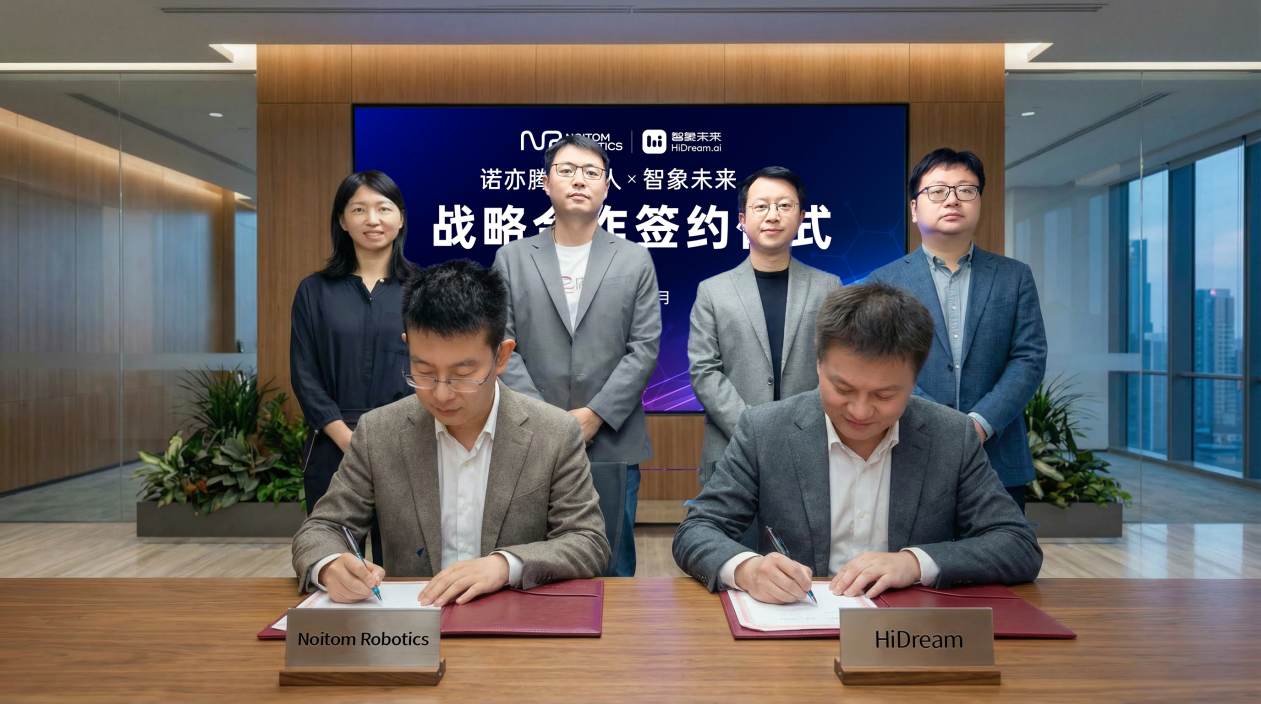 凤凰网科技讯 3月30日,智象未来(HiDream.ai)与诺亦腾机器人(Noitom Robotics)近日宣布正式达成战略合作。双方将结合多模态大模型的视频生成能力与真实动作捕捉基础设施,共同探索具身智能行业高质量训练数据的大规模生成模式。诺亦腾机器人创始人兼首席执行官戴若犁与智象未来创始人兼首席执行官梅涛共同出席了此次签约仪式。