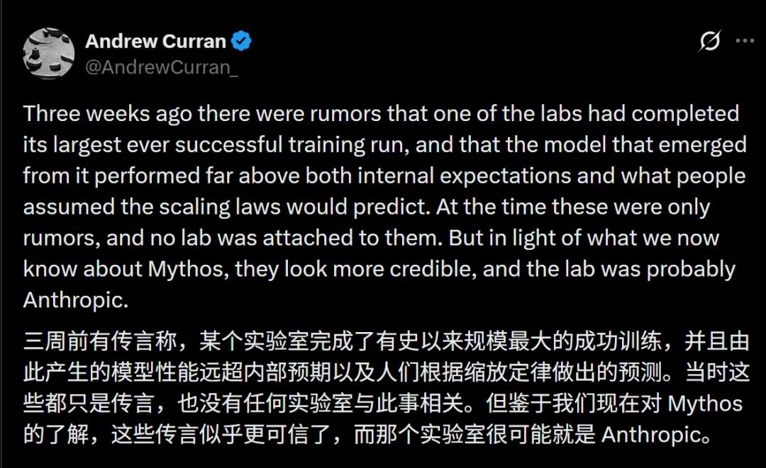 今天,AI大V Andrew Curran的一篇X,在圈内引起大规模讨论。