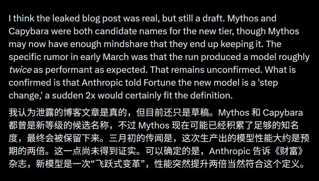 Mythos,或者它的另一个候选名Capybara(水豚),极有可能就是Anthropic即将发布的下一代旗舰模型。