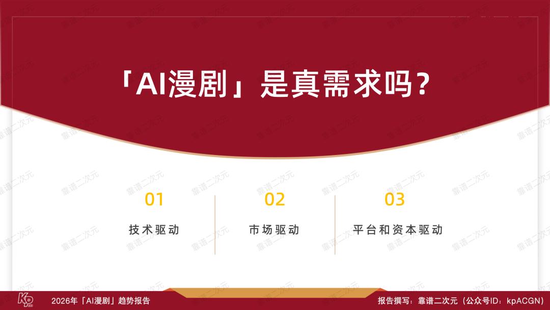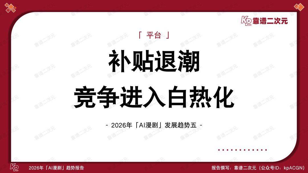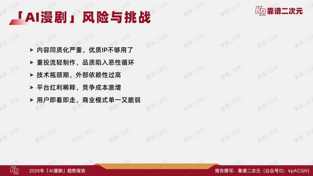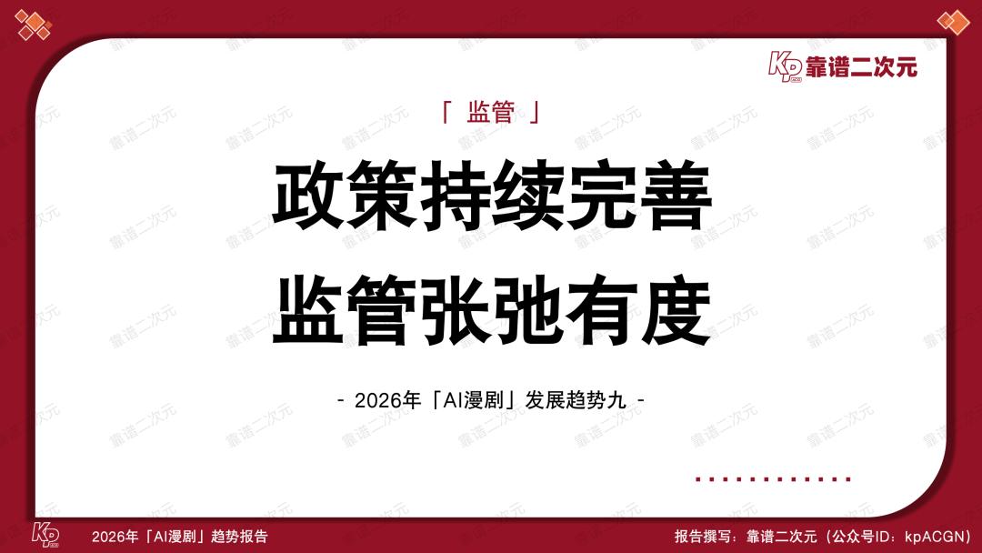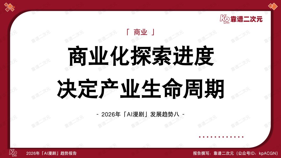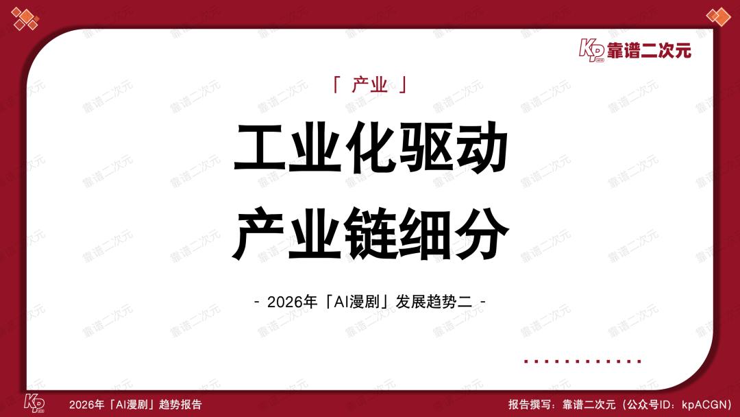 喜忧参半,风口正当时,2026年是AI漫剧产业关键性的一年,能不能跑出头部作品、跑通工业化生产逻辑,决定了视频平台在AI时代内容竞争中的首轮排位,也考验了版权方IP资产化的综合实力。靠谱二次元(公众号ID:kpACGN)希望从产业不同视角切入,得出2026年AI漫剧十大发展趋势,并根据产业现状进行逐条解析。