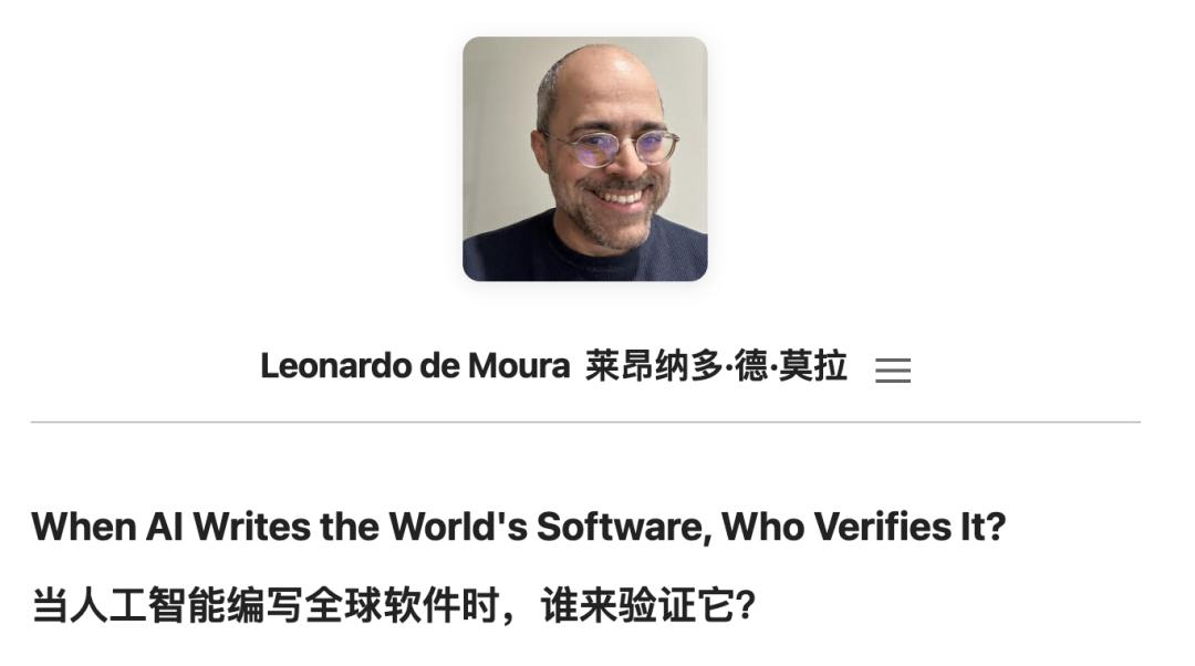 Leonardo de Moura,是Z3 SMT求解器和Lean定理证明器的缔造者,现任AWS高级首席应用科学家、Lean FRO首席架构师,在2月底发了一篇博客: