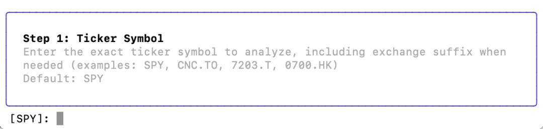 启动后会弹出一个交互界面,可以选择目标股票代码、分析日期、LLM提供商、研究深度这些参数。