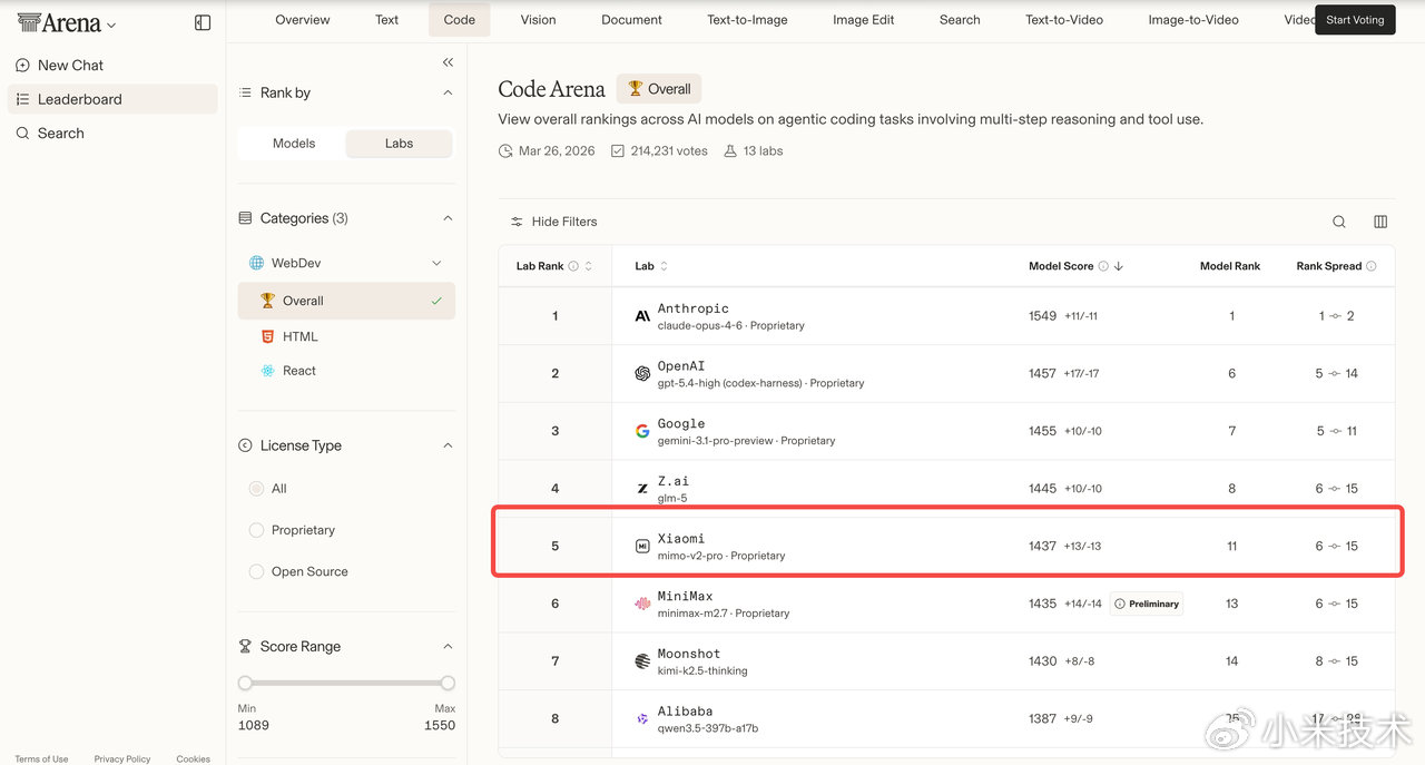 IT之家 3 月 31 日消息,小米技术官方微博今日向用户“汇报”了 MiMo-V2-Pro 最新成绩表现。