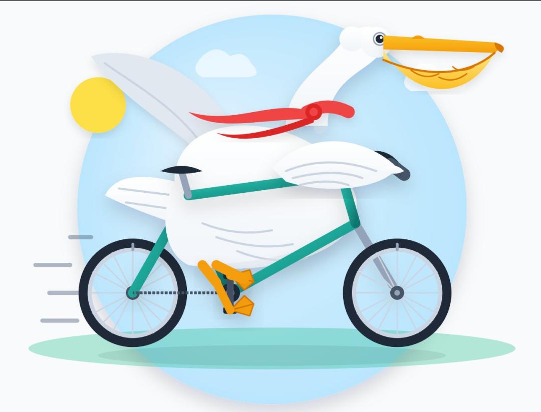SVG画鹈鹕骑自行车,一周前还是右边的样子,昨天就已经进化成了左边这样。