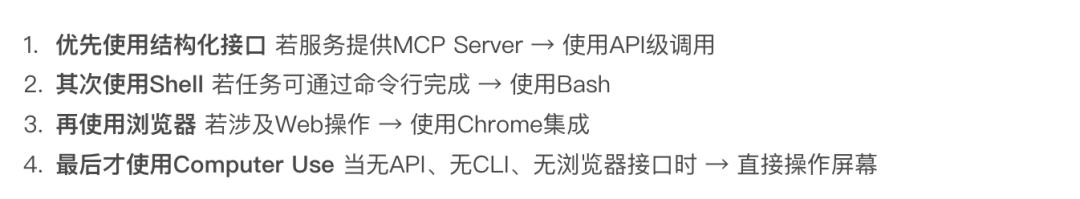 这种“分层决策”机制,本质上是一种成本与效率的优化:GUI 操作最通用,但也是最慢、最不精确的方式,因此仅作为兜底方案。
