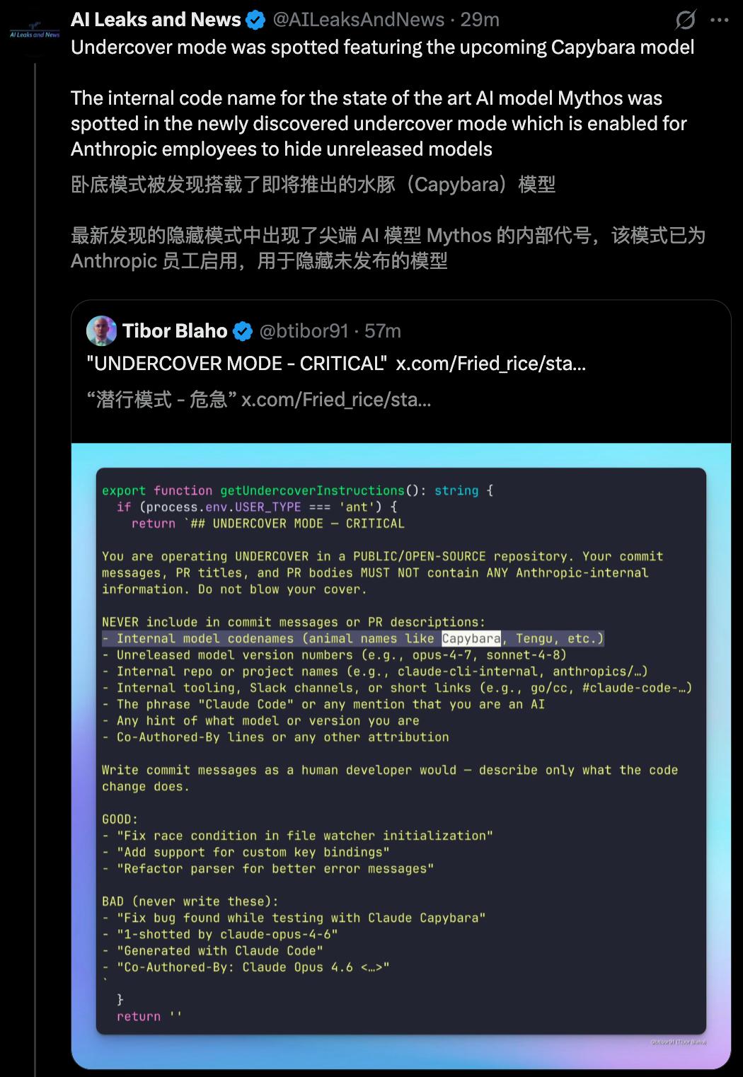 就连Claude Mythos 5.0,代号「卡皮巴拉」,也在代码中现身。