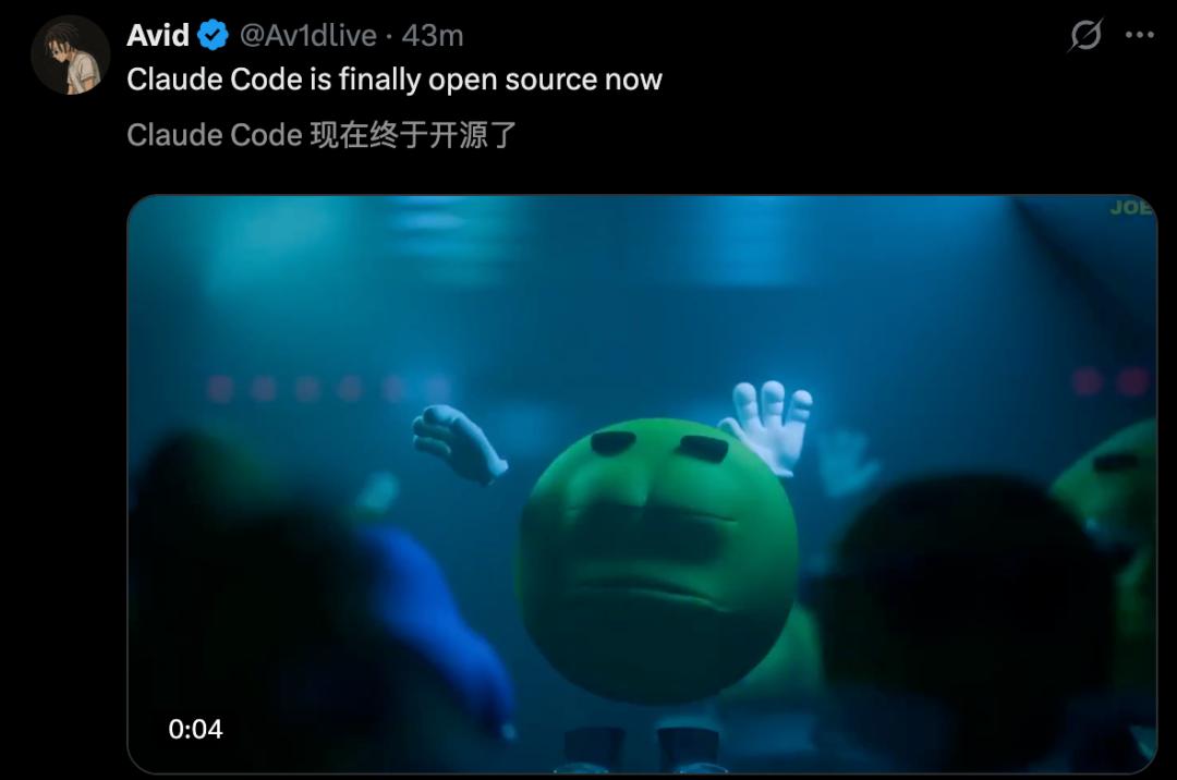 还有网友调侃道,「Claude觉醒了,决定开源Claude Code」。