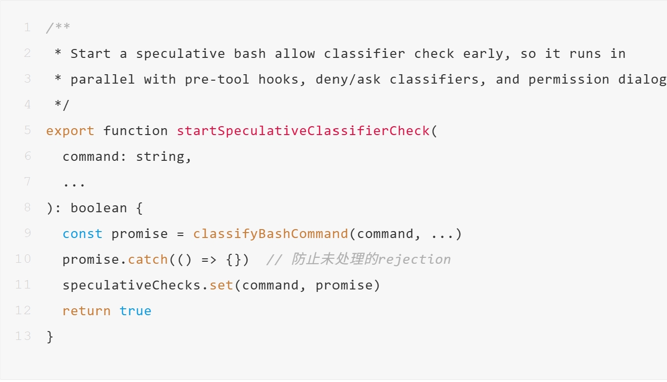 如果分类器判断"这个命令大概率没问题",弹窗直接跳过。用户感知不到等待,因为判断在弹窗准备期间已经做完了。
