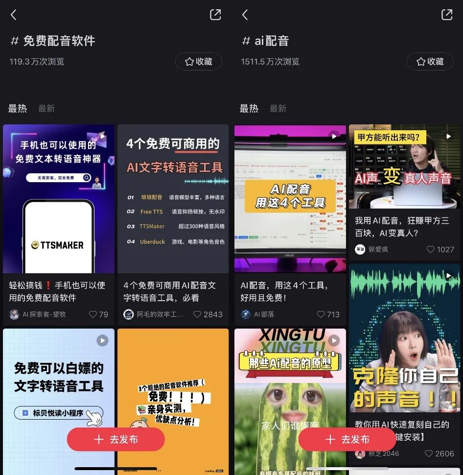 而现在,实现AI声纹的提取和应用已经很简单了。在社交平台检索“AI配音”会发现,现在市面上已经能轻松实现声音克隆,尤其是名人的声音。AI配音在小红书有超千万次的浏览,在抖音检索AI配音也会直接推荐可以进行配音的小程序。