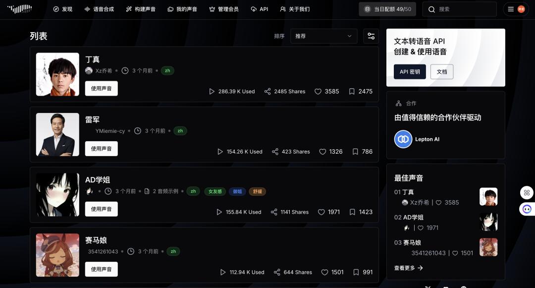 “超现实体验”刺激着年轻人们的精神末梢,给年轻人带来一种突破圈层的快感。AI配音网页的推荐页也会不断刺激观众的这种“超现实体验”,让年轻人们不断沉浸在这种新奇的体验中。