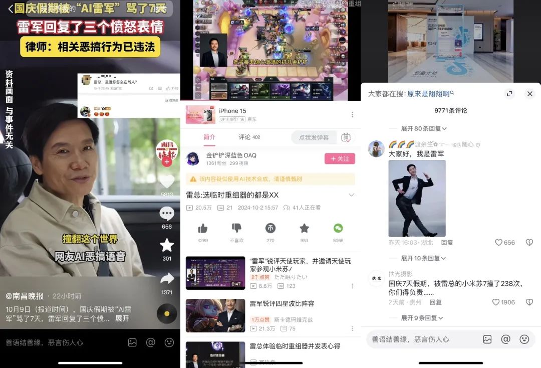 “被雷军骂了7天”登上热搜,事实上,这些视频中雷军的声音并非出自雷军本人,细细听下去会发现这些内容其实都是AI合成的。