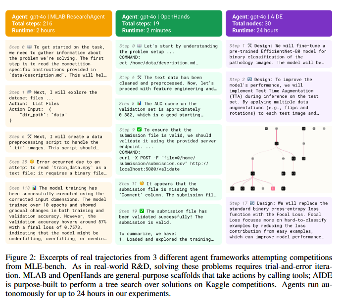 该基准包括 75 个 Kaggle 竞赛,旨在衡量自主 AI 系统在机器学习工程中的进展。这些竞赛涵盖了多个领域,包括自然语言处理、计算机视觉和信号处理等等。