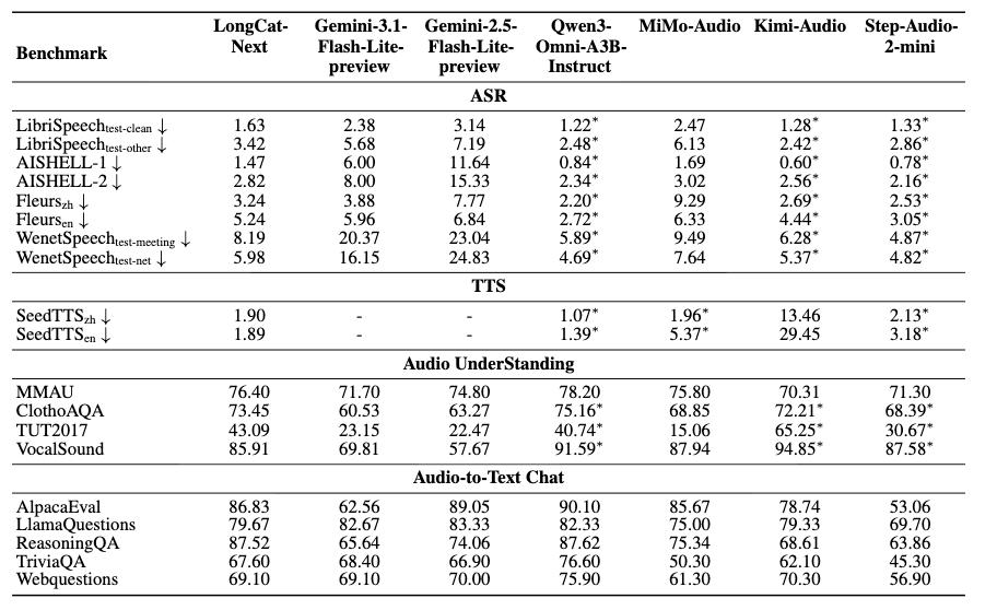 视觉之外,LongCat-Next 同样将音频纳入了统一的离散自回归框架。