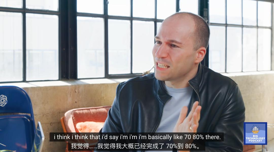 他甚至给AGI完成度打出了一个分数:70%到80%。