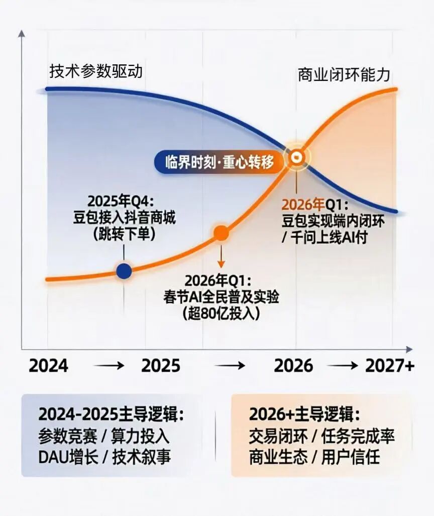 大模型行业正由第一阶段的技术突围与参数比拼,加速切入至商业化探索与办事能力构建的第二阶段。这不仅是技术的迭代,更是一场关于“下一代消费入口”的战争。枪声已经响起。