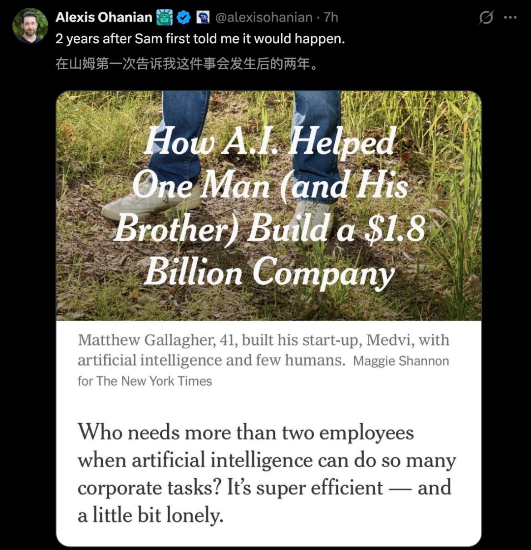 一人十亿美元公司诞生,奥特曼终极预言成功了!