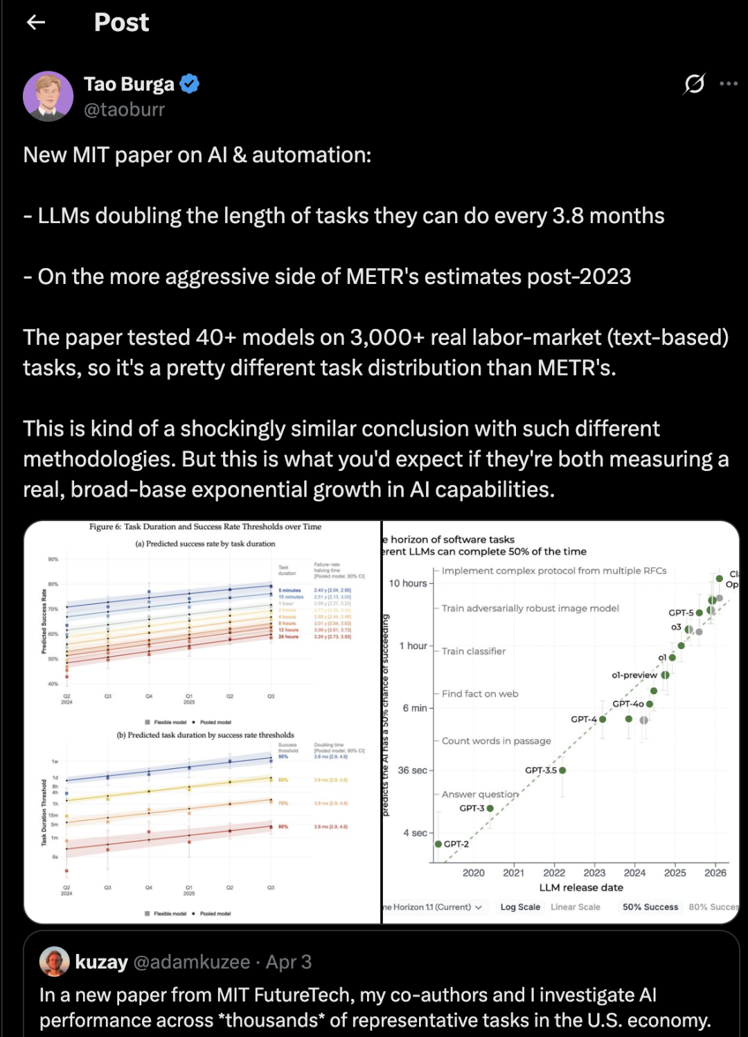 3.8个月的任务长度翻倍,MIT从更宽的劳动市场战场证明:这不是孤例,这是宿命。