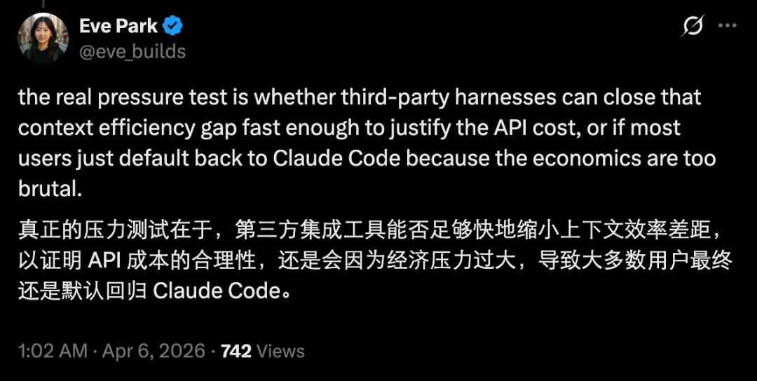 罗福莉认为成本压力会倒逼框架进化,但开发者们提出了一个更残酷的问题:第三方框架能不能足够快地把效率差距补上,让 API 定价在经济上仍然说得过去?还是大多数用户发现成本太惨烈,直接默认回到 Claude Code?