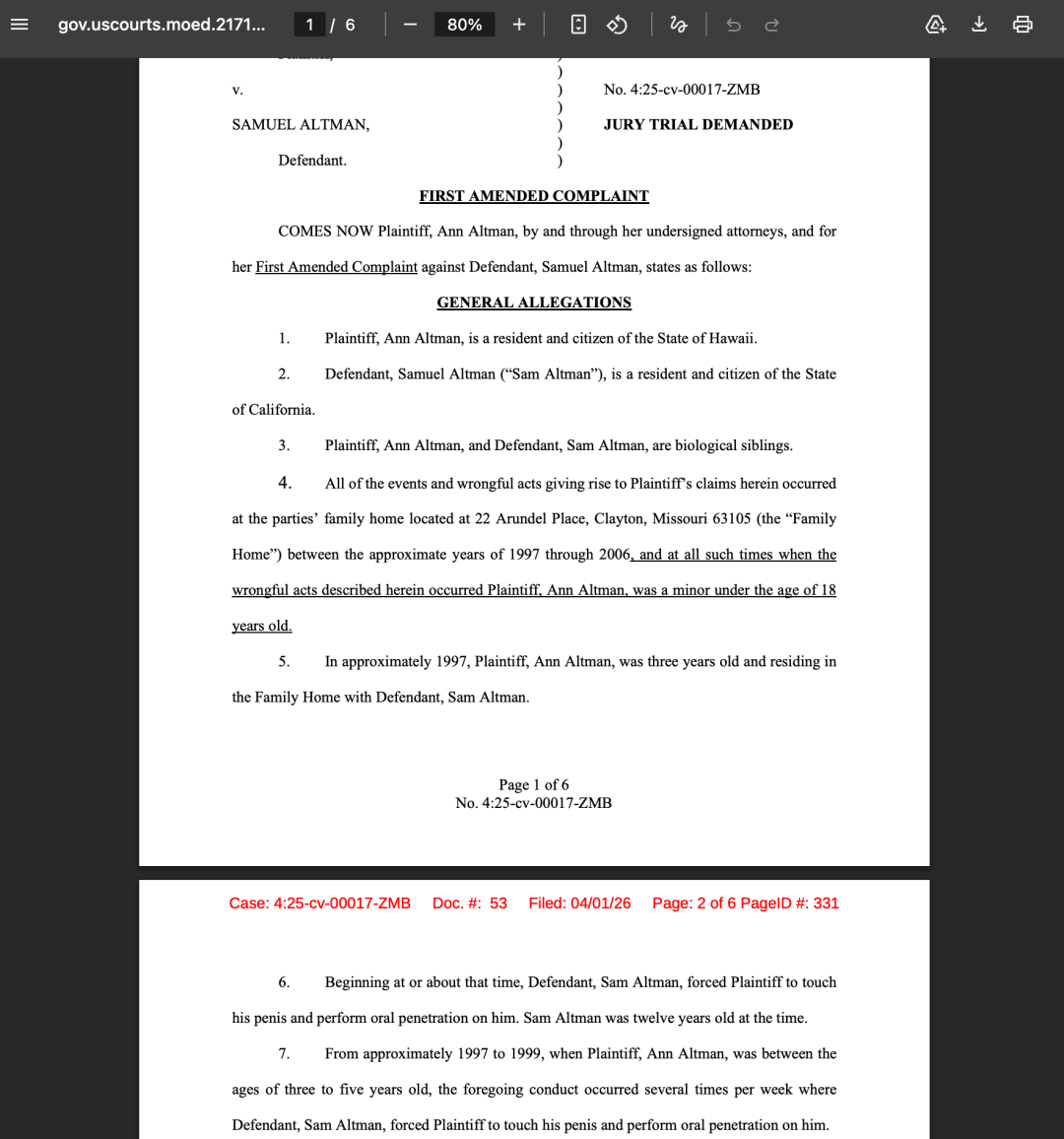 奥特曼的人格缺陷,恐怕不止这讨好型+反社会这两条。在最新的法庭文件中,他的妹妹指控他曾在未成年期间,对自己进行长达数年的性侵。