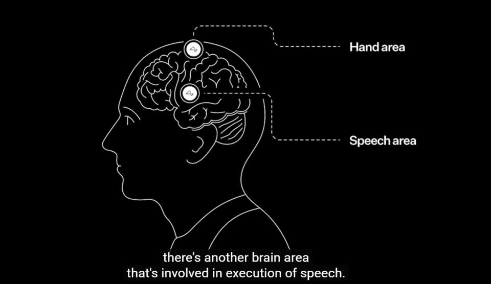 Neuralink脑机接口应用负责人尼尔·埃文·陈(Nir Even Chen)打了个比方:Telepathy(心灵感应)这个产品主要记录的是运动皮层里控制手和手臂动作的区域,而如果往下大概两到三英寸,就是负责言语执行的脑区。
