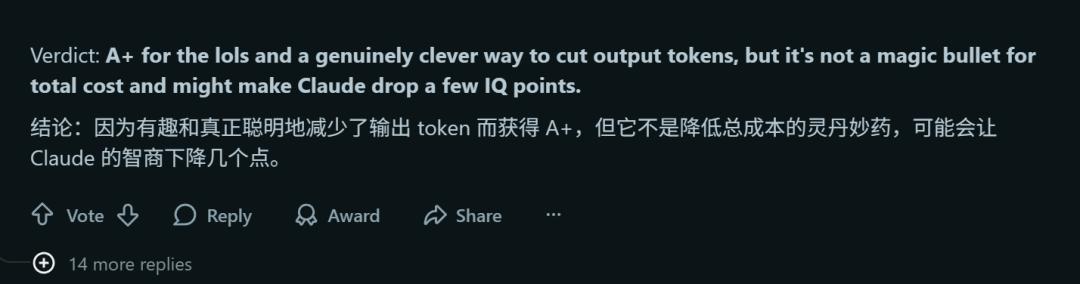 不过小哥也提醒,caveman仅影响输出Token,思考/推理Token不受影响。
