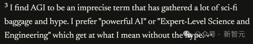 他不喜欢使用 AGI 这个术语,因此使用「强大的 AI」(powerful AI)这个说法。