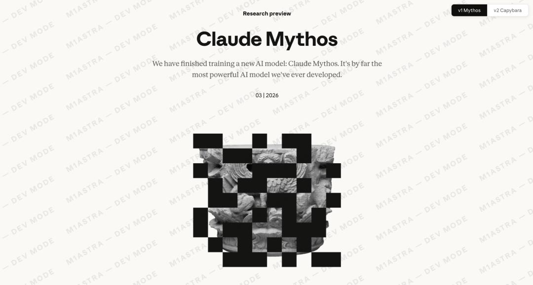 上个月,Anthropic 最强模型 Claude Mythos 意外被曝光。