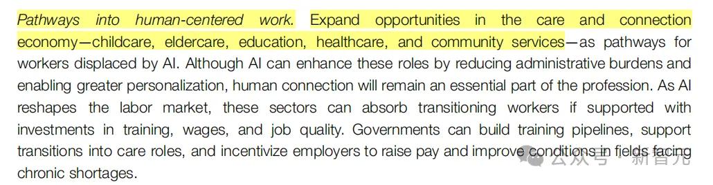 OpenAI在文件中专门拿出一节来讲「关爱与连接经济」:育儿、老人护理、教育、社区服务。
