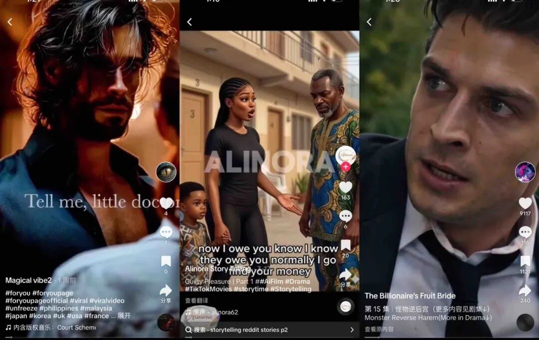 在国内市场,短剧真正成为主流品类内容,对长剧、电影都造成威胁,是2025年一系列精品化口碑短剧诞生之后,尤其是短剧演员成为流量明星之后才发生的。TikTok上流量较高的AI短剧评论区,大部分用户反馈仍以调侃猎奇的情绪为主,距离破圈成为主流娱乐消费还有遥远的距离。