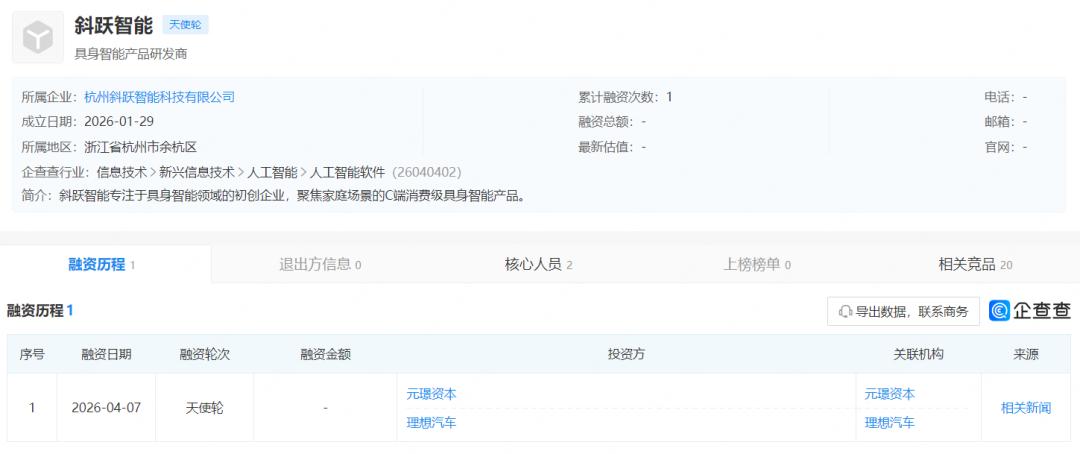 而截至目前,斜跃智能已完成首轮融资,由元璟资本和理想汽车共同投资。