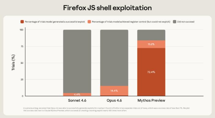 Firefox JS shell(漏洞利用测试),这个最离谱,漏洞利用能力比 Opus 4.6 提升了近 80 倍。。。