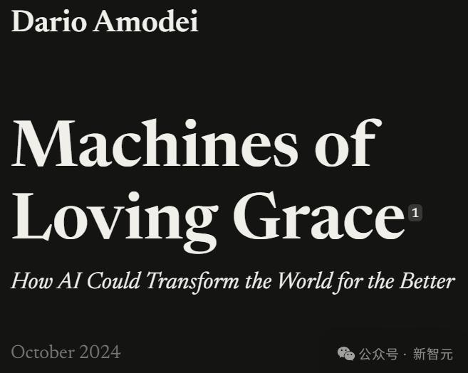 这篇文章题为「Machines of Loving Grace」,副标题为「AI能如何改变世界,创造更美好的未来?」。