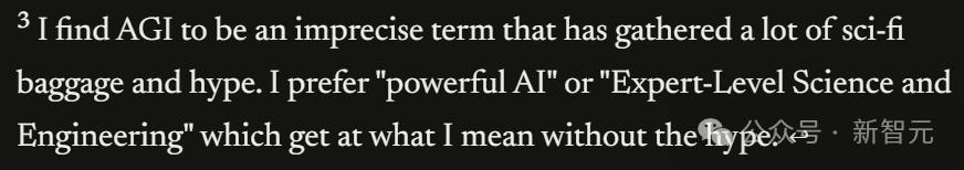他不喜欢使用AGI这个术语,因此使用「强大的AI」(powerful AI)这个说法。