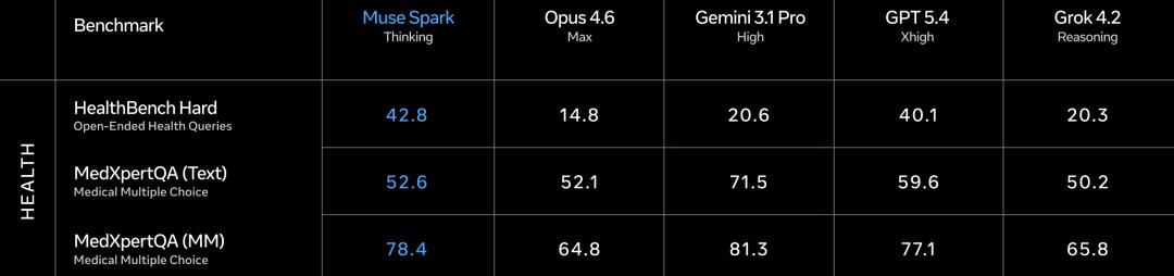 但是医疗健康这个赛道,Muse Spark打得很凶。