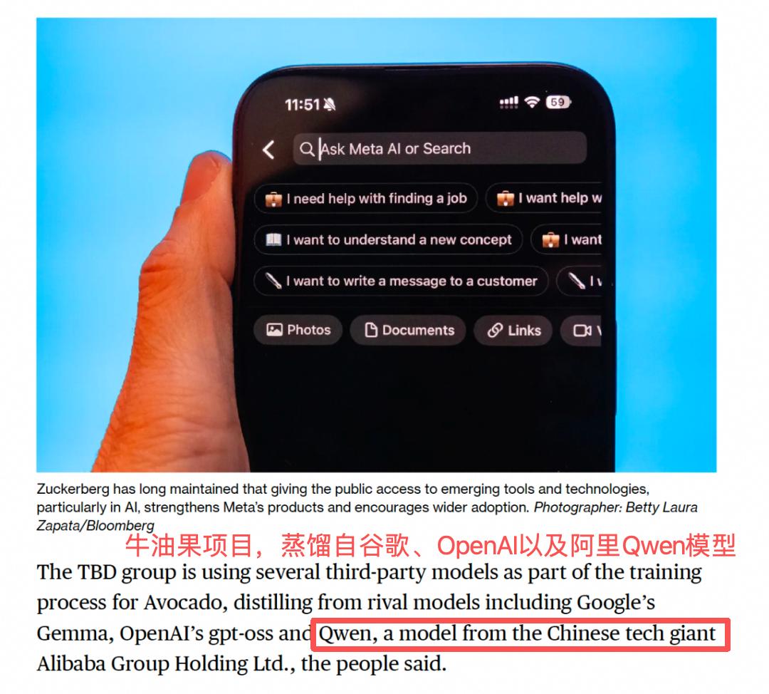 去年12月,Meta的“牛油果”项目曾被曝出使用Qwen开源模型做了蒸馏训练。