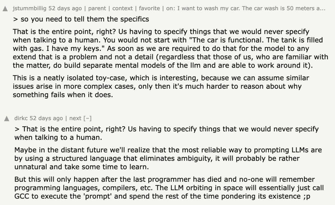Hacker News 上一个网友评论说,如果我们必须把人和人交流时根本不需要明说的背景条件都补充出来,AI 才能得出正确结论,那它的「理解」二字就值得打个问号了。