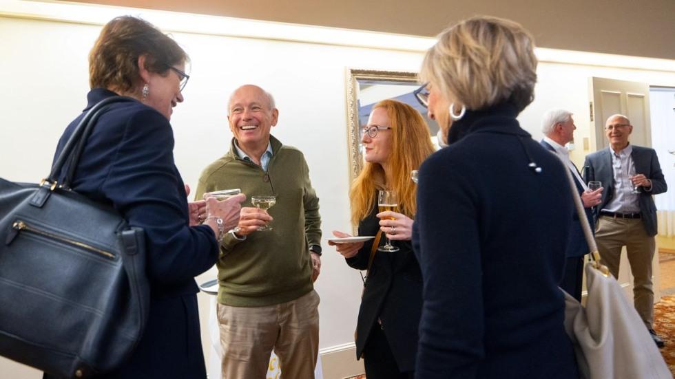 彼得・豪伊特与布朗大学同事共庆诺奖 图片来源:布朗大学