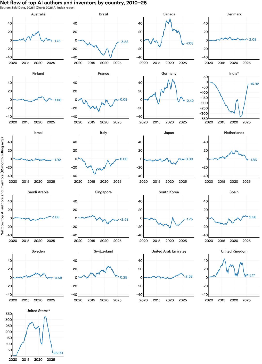 美国仍然是全球AI研究人员密度最高的国家,但流入的水龙头正在拧紧。